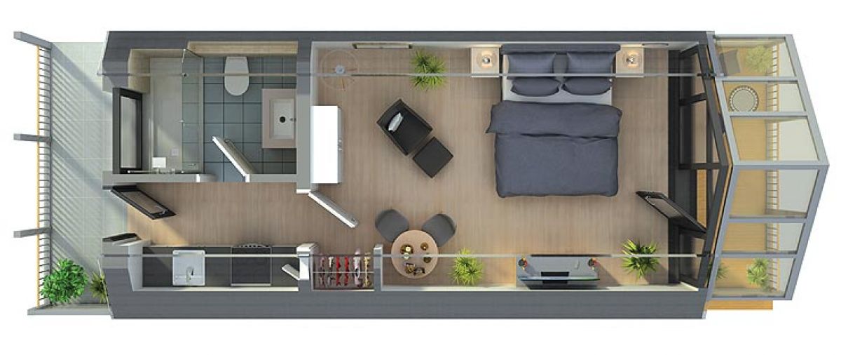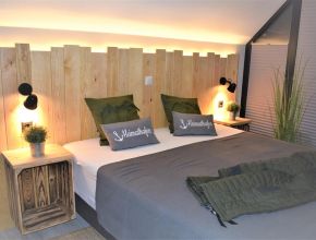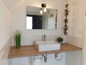 Das moderne Apartment „BeachHouse Seebude“ (30m²) wurde ausgestattet mit einen kombinierten Wohn- und Schlafbereich (Doppelbett 180 cm). Eine separate Küche incl. Induktionsherd, Geschirrspülmaschine, Kühlschrank (mit Gefrierfach), kombinierter Backofen/Mikrowelle, Toaster und Wasserkocher. Tageslicht Duschbad mit WC, und ebenerdiger, großzügiger Dusche.