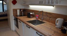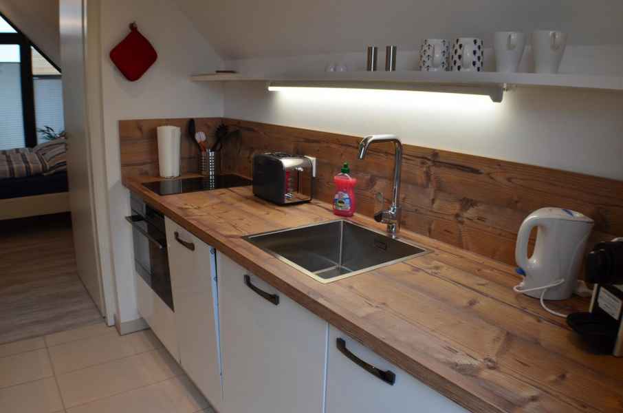 Das moderne Apartment „BeachHouse Seebude“ (30m²) wurde ausgestattet mit einen kombinierten Wohn- und Schlafbereich (Doppelbett 180 cm). Eine separate Küche incl. Induktionsherd, Geschirrspülmaschine, Kühlschrank (mit Gefrierfach), kombinierter Backofen/Mikrowelle, Toaster und Wasserkocher. Tageslicht Duschbad mit WC, und ebenerdiger, großzügiger Dusche.