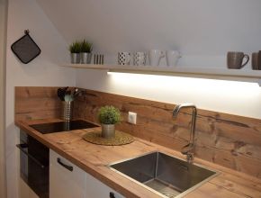 Das moderne Apartment „BeachHouse Seebude“ (30m²) wurde ausgestattet mit einen kombinierten Wohn- und Schlafbereich (Doppelbett 180 cm). Eine separate Küche incl. Induktionsherd, Geschirrspülmaschine, Kühlschrank (mit Gefrierfach), kombinierter Backofen/Mikrowelle, Toaster und Wasserkocher. Tageslicht Duschbad mit WC, und ebenerdiger, großzügiger Dusche.